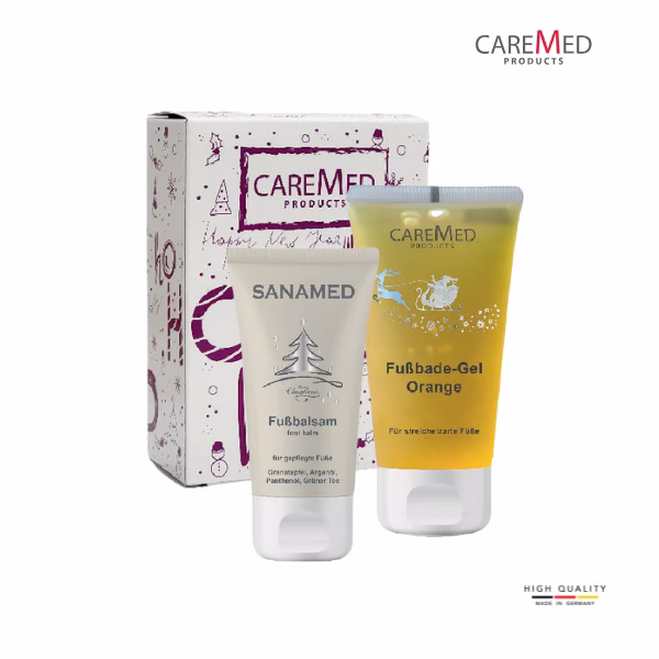 Praznični komplet vsebuje intenzivno negovalno in pomirjujočo kremo z granatnim jabolkom (50 ml) ter negovalni in osvežilni gel za kopel (75 ml) z vonjem pomaranče.
