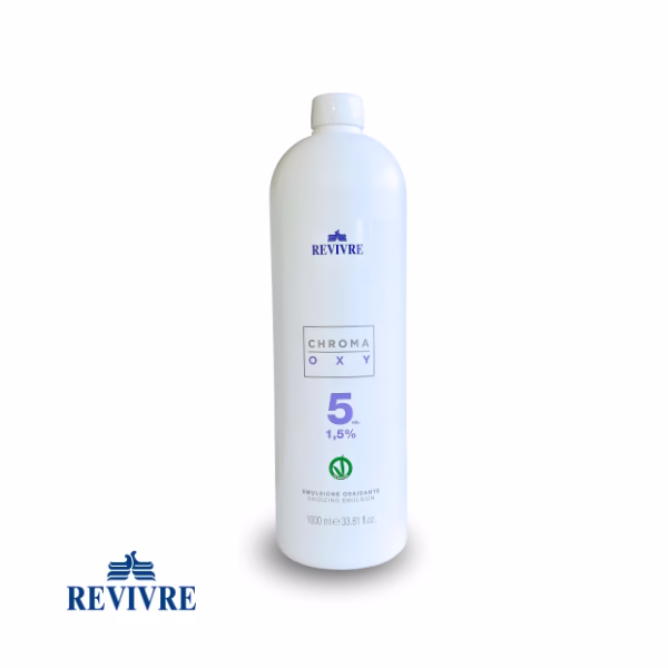 CHROMA OXY razvijalec barve – emulzija vodikovega peroksida za uporabo v mešanici z barvnim sistemom in posvetljevalnimi izdelki Revivre, obogatena z vlažilnimi, mehčalnimi in negovalnimi sestavinami.