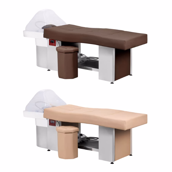 SPA ležišče Head Spa 017 je kombinacija funkcionalnosti in sodobnega dizajna. Opremljeno je s trdnim okvirjem iz nerjavečega jekla, ki zagotavlja stabilnost in dolgotrajno vzdržljivost. Ergonomsko oblikovano ležišče je prevlečeno z mehkim umetnim usnjem v odtenkih rjave, kar med tretmaji zagotavlja maksimalno udobje.