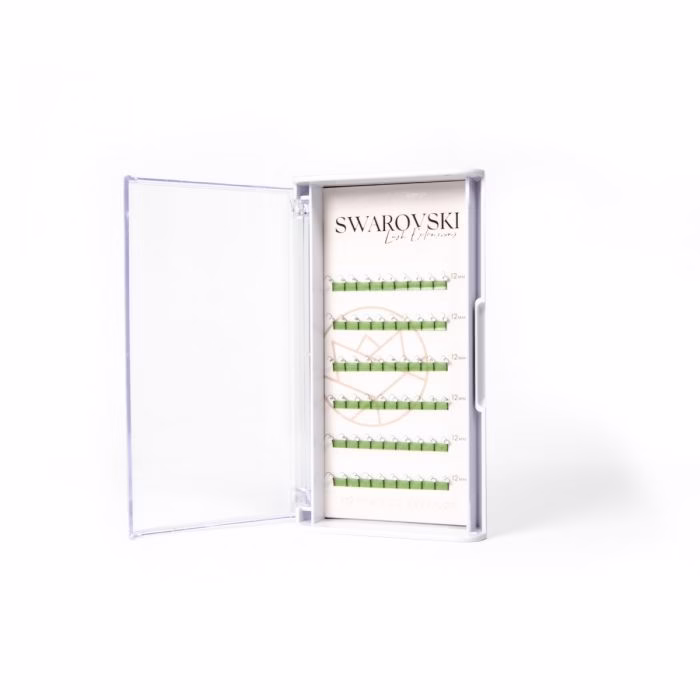 Podaljški trepalnic Swarovski vsebujejo en pravi kamen Swarovski na vsaki posamezni trepalnici. Trepalnice so na voljo v debelini 0,15 mm ter v krivuljah C in D. Trepalnice Swarovski se nahajajo na pladnju s 6 trakovi različnih dolžin (7 – 12 mm).