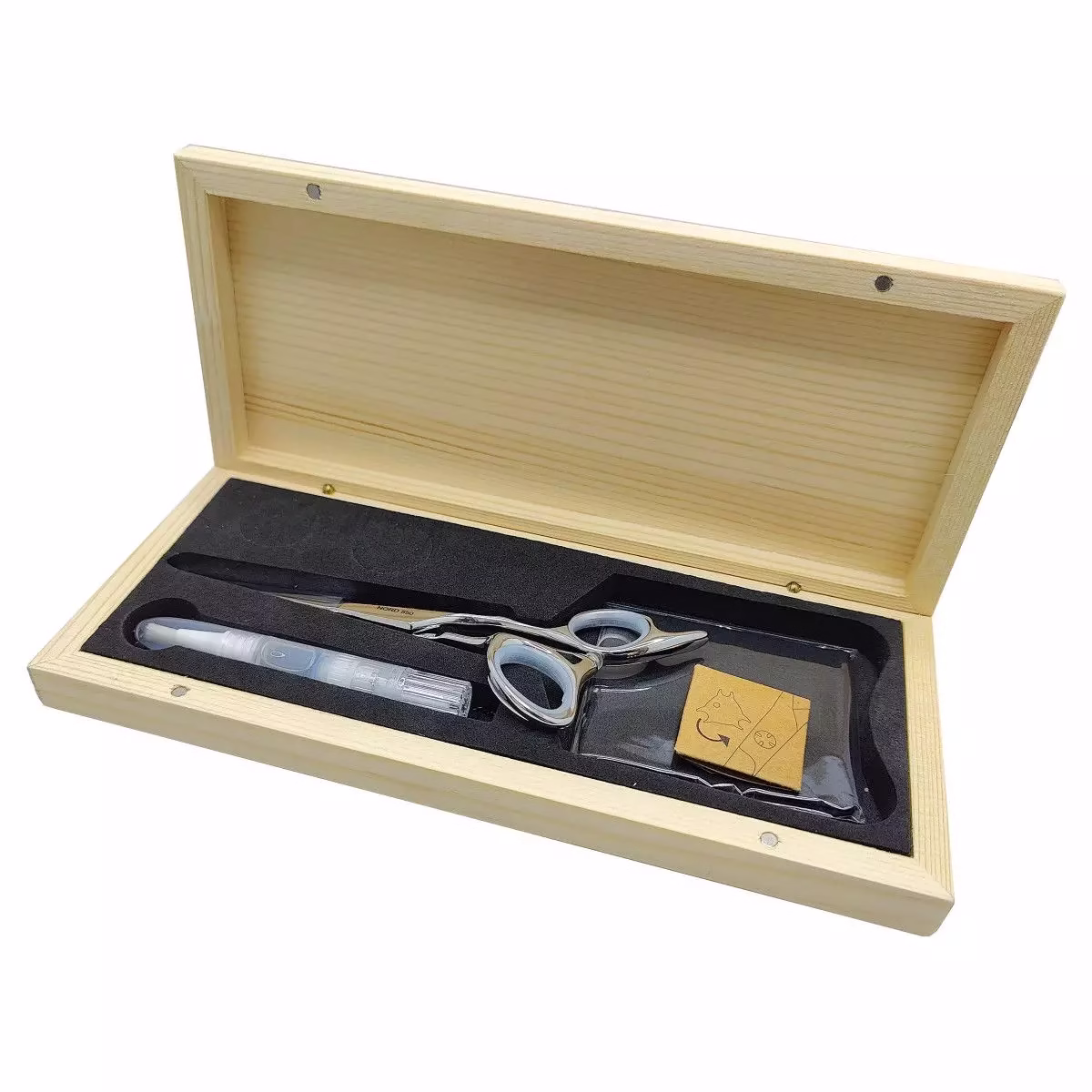 Nevidni nastavitveni vijak: Škarje so opremljene z inovativnim nevidnim nastavitvenim vijakom, ki zagotavlja optimalno nastavitev škarij. Nevidni vijak ne le poenostavlja dizajn, temveč tudi zagotavlja, da so škarje vedno pravilno nastavljene, kar omogoča brezhibno delovanje pri vsakem striženju.